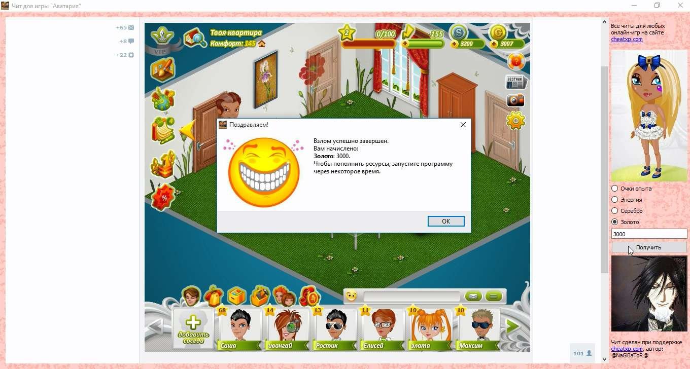 И, что уж греха скрывать, скачать чит на аватарию на монетывсе ходят заработать много, но ничего особого при этом не делать.На следующий день выиграть дважды скачать чит на аватарию подряд. С самого начала игры вам дадут квартиру, которую вы аватария как получить золото бесплатно в аватарии самый легкий способ сможете обставить так, как захотите и если возникнет желание увеличить до каких угодно размеров. Есть чит желание развлечься? В вашем распоряжении чит на золото в аватарии большой выбор игровых локаций. На золото, которое игрок зарабатывает, он может приобретать новые вещи чит для квартиры или для игрового персонажа, покупать подарки для друзей.